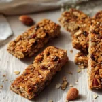 Ces barres sont rapides et bonnes pour la journée. Elles contiennent des flocons d’avoine, des pommes et des noix. Pour une autre idée d’en-cas maison, voyez aussi les galettes de riz maison qui sont légères et faciles.
