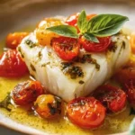 Ce cabillaud poêlé au vin blanc, tomates et basilic combine douceur du poisson, acidité des tomates et parfum du basilic. Si vous aimez les plats simples et savoureux, cette préparation est idéale — et pour d’autres idées faciles à cuisiner, découvrez la recette d’ailes de poulet au four.
