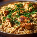 Cette recette est rapide, nourrissante et réconfortante. Elle demande peu d’ingrédients, se prépare en une seule casserole et plaît généralement aux adultes comme aux enfants. L’orzo apporte une texture proche des pâtes tout en cuisant directement dans le bouillon, ce qui concentre les saveurs.