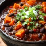 Un chili chaleureux et réconfortant, combinant la douceur des patates douces et la texture crémeuse des haricots noirs, parfait pour les soirs où l’on veut un plat complet.