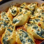 Des coquilles de pâtes farcies avec un mélange crémeux d’épinards et de ricotta, idéales pour un dîner en famille.