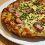 Cette galette au fromage et saucisses est simple, rapide et nourrissante. Elle plaît aux enfants et aux adultes. Elle utilise peu d’ingrédients et se cuit vite.