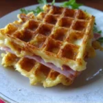 Des gaufres croustillantes aux pommes de terre, jambon, et fromage, parfaites pour un repas rapide ou un brunch.