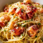 Cette recette de pâtes au homard dans du beurre à l’ail vous emmène directement sur la côte méditerranéenne. Imaginez-vous siroter un verre de vin blanc tout en savourant des pâtes délicates, enrobées d’une sauce onctueuse, avec des morceaux tendres de homard qui se mêlent aux saveurs riches du beurre et de l’ail. C’est un plat raffiné, mais qui reste accessible, parfait pour une soirée spéciale ou un dîner en amoureux.