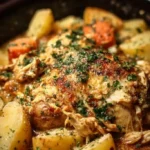 Un plat réconfortant de poulet tendre, de pommes de terre savoureuses et de parmesan, cuit doucement dans une mijoteuse.