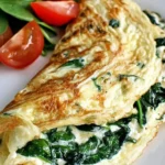 Une omelette moelleuse et crémeuse aux épinards, parfaite pour un repas rapide et nutritif.