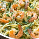 Un plat simple et savoureux de pâtes à l’ail et crevettes, parfait pour un dîner rapide.