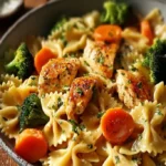 Les Pâtes Papillon au Poulet, Cheddar & Havarti forment un gratin crémeux et coloré, parfait pour toute la famille. Si vous aimez varier les plats de poulet, pensez aussi à tester les ailes de poulet au four pour un accompagnement ou un menu différent. Cette recette combine des fromages fondants, des légumes croquants et du poulet déjà cuit pour un plat rapide à assembler.