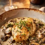 Poulet Crémeux au Vin Blanc et Champignons