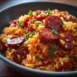 Riz au chorizo et à la tomate dans un plat savoureux