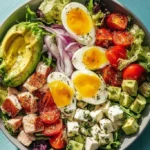 Une salade classique américaine combinant protéines, légumes croquants et fromage crémeux, parfaite pour un déjeuner ou un dîner léger.