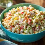 Une salade de macaroni d’été fraîche et colorée, idéale pour les pique-niques et les barbecues.