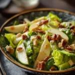 Parce qu’elle rappelle les repas en famille : simple, rapide et généreuse. Elle combine la fraîcheur des pommes et du céleri avec le croquant des noix et la douceur des raisins secs. C’est une recette qui se prépare sans complication et qui plaît à tous les âges.