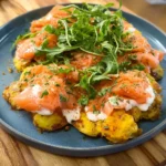 R : Oui, vous pouvez préparer la base (pommes de terre et yaourt) à l’avance, mais ajoutez le saumon et la roquette juste avant de servir.