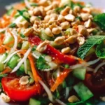 La salade thaï aux cacahuètes est un plat frais et savoureux qui allie le croquant des légumes à la douceur des nouilles de riz. Parfaite pour un repas léger ou en accompagnement, cette salade est un vrai régal pour les papilles.