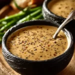 Une sauce onctueuse au poivre qui sublime viandes et légumes, parfaite pour un dîner élégant.