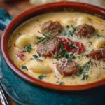 Cette soupe fonctionne parce qu’elle équilibre crémosité et protéines : la crème et le parmesan apportent une onctuosité et une profondeur, tandis que la saucisse donne du caractère. Les épinards ajoutent de la couleur et des nutriments sans alourdir le plat. C’est rapide à préparer, rassasiant et adaptable selon ce que vous avez dans le frigo.