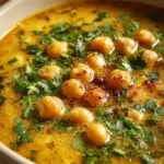 Une délicieuse soupe nourrissante à base de pois chiches, légumes et herbes, parfaite pour les soirées froides.