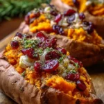 These stuffed sweet potatoes combine sweetness, acidity, and crunch for a comforting and colorful dish, perfect for a weeknight dinner or seasonal meal.