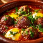 Le Tajine de Kefta aux Œufs est un plat rapide et réconfortant. Il combine des boulettes de viande simples et une sauce tomate parfumée, puis on y casse des œufs pour un plat complet. Si vous aimez les recettes maison et les desserts faciles, regardez aussi une délicieuse croustade aux pommes pour terminer le repas.