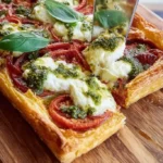 La tarte aux tomates et ricotta avec pesto est un plat simple et délicieux qui évoque les saveurs d’été. Avec des tomates fraîches, de la ricotta crémeuse et du pesto fait maison, cette tarte est parfaite pour un repas léger, un pique-nique, ou comme entrée lors d’un dîner. Cette combinaison de saveurs offre un équilibre parfait entre le sucré des tomates et le crémeux de la ricotta, le tout rehaussé par le goût frais du basilic.