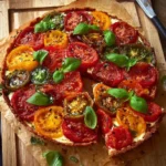 Parce qu’elle réunit peu d’ingrédients mais beaucoup de goût. La pâte croustillante, les tomates fondantes et le chèvre crémeux forment un trio équilibré. Cette tarte est idéale pour un déjeuner léger, un dîner avec une salade verte, ou pour emporter lors d’un pique-nique. Elle met en valeur les produits frais sans complexité.