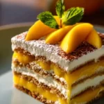 Cette recette transforme le tiramisu traditionnel en un dessert fruité et léger. La mangue apporte du peps et une texture juteuse, le lait de coco remplace le café ou l’alcool pour un goût plus doux, et les biscuits à la cuillère gardent une base moelleuse. Elle convient bien aux repas d’été, aux invités qui cherchent une alternative au chocolat, ou simplement quand on veut quelque chose de frais.