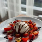 Un plat frais et Ă©lĂ©gant de tomates juteuses et burrata crĂ©meuse, parfait pour l’Ă©tĂ©.